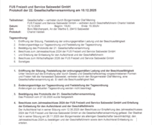 Die Gesellschafterversammlung der FUS Freizeit und Service Salzwedel GmbH hat in ihrer Sitzung am 10. Dezember 2025 die Feststellung des Jahresabschlusses zum 31.12.2024 und die Entlastung des Aufsichtsrates und der Geschäftsführerin beschlossen.