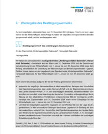 Mit Datum vom 09. Mai 2025 wurde durch die Wirtschaftsprüfungsgesellschaft Höweler, Rischmann und Partner mbH aus Braunschweig, für das Geschäftsjahr vom 01.01.2024 bis 31.12.2024 der uneingeschränkte Bestätigungsvermerk erteilt.