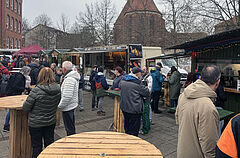 "Ich hoffe auf einen friedlichen, einen frohen Weihnachtsmarkt", so Bürgermeister Meining. Er freute sich sichtlich, dass sich viele Vereine und Initiativen auf dem Markt präsentieren, beispielsweise der Bibliotheksförderverein, die Schüler der Comenius-Schule oder auch die Lady Lions Salzwedel.