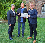 Kommunen, die zum Beispiel durch regelmäßige Instandhaltung oder technische Modernisierung Risiken verringern und Schäden an kommunalen Gebäuden, Inventar und Vermögen vermeiden, werden am wirtschaftlichen Erfolg der ÖSA beteiligt. Den symbolischen Scheck übergaben ÖSA-Geschäftsstellenleiter Björn Hoppe und ÖSA-Gebietsleiter Torsten Resas am Dienstag, 07.10.2025, Bürgermeister Olaf Meining.