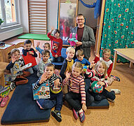 Die Jungen und Mädchen zeigten sich als gespannte Zuhörer, die aufmerksam den Geschichten, die sich passend zur Jahreszeit in eine Herbst- und eine Wintergeschichte gliederten, lauschten. Olaf Meining war in der Igelgruppe zu Gast, ebenso Verwaltungsmitarbeiterin Marita Taubhorn. Jean Kusian war in der Käfer-Gruppe der Kindertagesstätte "Seebenauer Dorfspatzen" als Vorleserin aktiv.