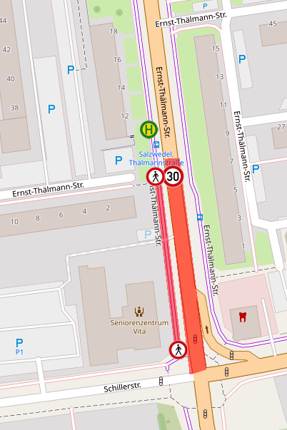 Die Haltestelle Ernst-Thälmann-Straße wird um circa 100 m in nördliche Richtung vorverlegt. Der Gehweg an der Ernst-Thälmann-Straße in Höhe der VITA ist innerhalb des oben angegebenen Zeitraums komplett gesperrt. Fußgänger werden gebeten, die gegenüberliegende Straßenseite zu nutzen.