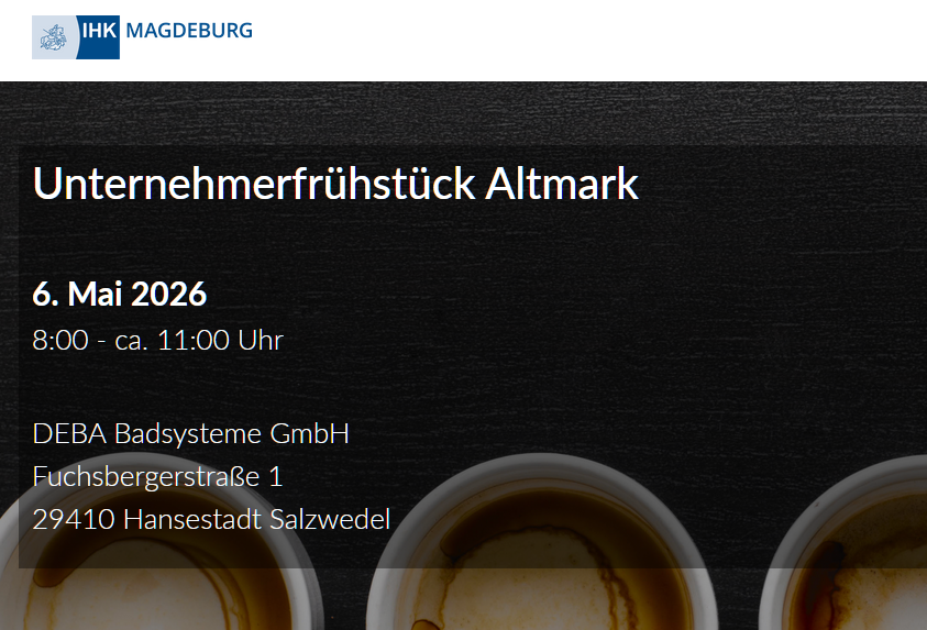 Das ist das Thema beim nächsten Unternehmerfrühstück Altmark, zu dem IHK Magdeburg gemeinsam mit der Handwerkskammer Magdeburg, dem Altmarkkreis Salzwedel und der Hansestadt Salzwedel herzlich einladen.